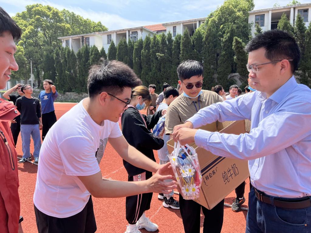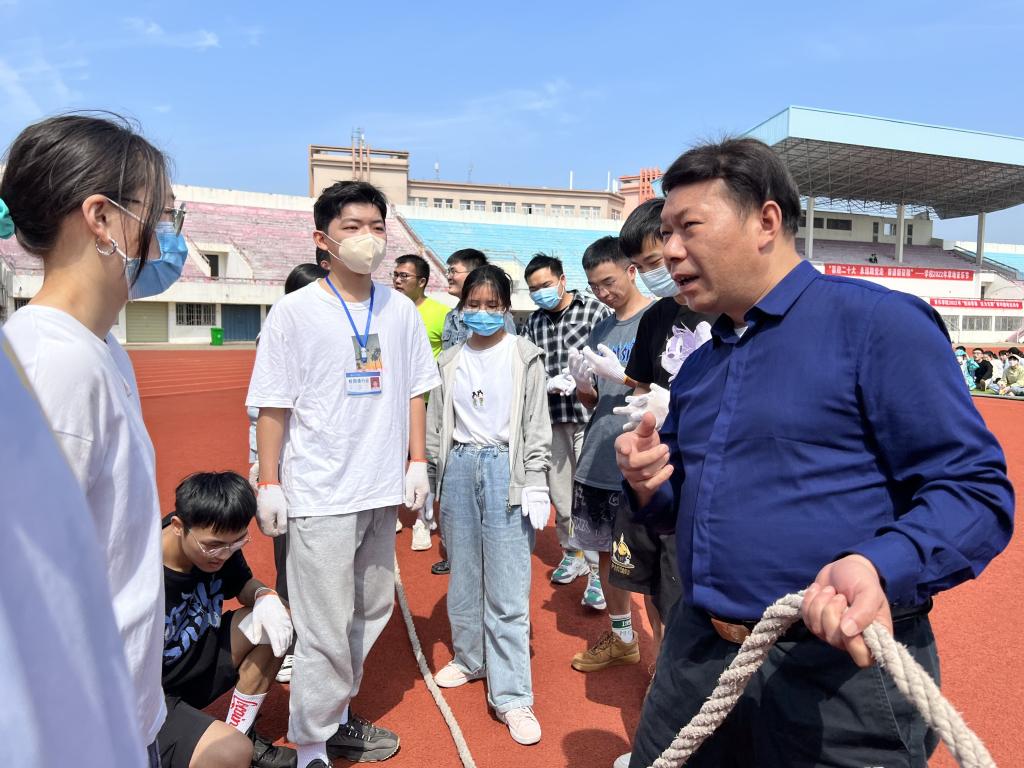 5月2日,best365官网在东区操场举办了“大力才能出奇迹”院内拔河比赛,湖北工程公司党委副书记陈伟亲自上场和同学们并肩作战、同场竞技。