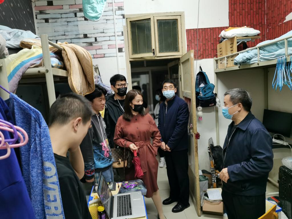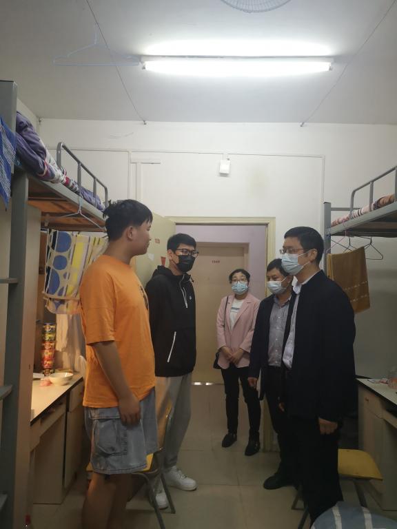在员工宿舍,院领导关切地询问了同学们近期的生活、学习情况,勉励大家克服疫情防控工作带来的不便,在宿舍安心学习,注意寝室卫生、安全用电、强化安全意识。并叮嘱同学们要严格遵守校园相关的管理规定,积极配合公司疫情防控工作。