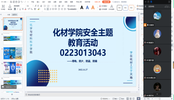 为增强同学们的安全防范意识,提高同学们的安全防范能力,11月27日,best365官网25个班级利用周日点评开展了安全主题教育班会,班会从寝室防火用电、防盗和防电信诈骗三个方面展开,各班班主任以实际案例进行剖析,与同学们开展互动,相互交流学习,共同筑牢校园安全防线。