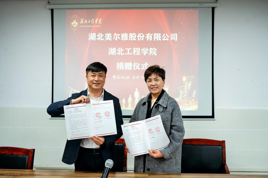 3月7日上午,湖北美尔雅股份有限公司(以下简称“美尔雅”)捐赠、合作签约仪式在公司举行。美尔雅生产部总经理向雄伟、全国营销总监南荣,公司员工办主任王新国、教育发展基金会秘书长谢彬,公司经理王锋、副经理刘海、党委副书记赵勇及师生代表出席仪式,仪式由赵勇主持。