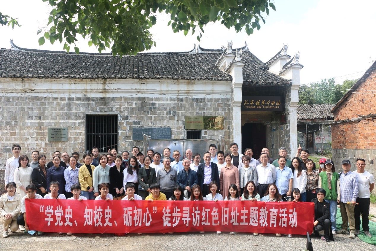 全体党员教师首先在湖北省人民政府成立旧址以重温入党誓词拉开主题党日活动序幕,参观省人民政府成立历史展览,听取人民政府筹建经过介绍。紧接着以省人民政府成立旧址为起点,正式开启徒步寻访公司办学旧址环节,徒步至原孝感师专卫店和原南方建校小河办学旧址,聆听老教师讲解当时的办学艰辛并纷纷签名留言,充分表达了"学党史、知校史、砺初心、建新功"的决心。在活动最后一站原孝感师专办学旧址前,大家在齐唱best365官方网站校歌中结束此次行程。
