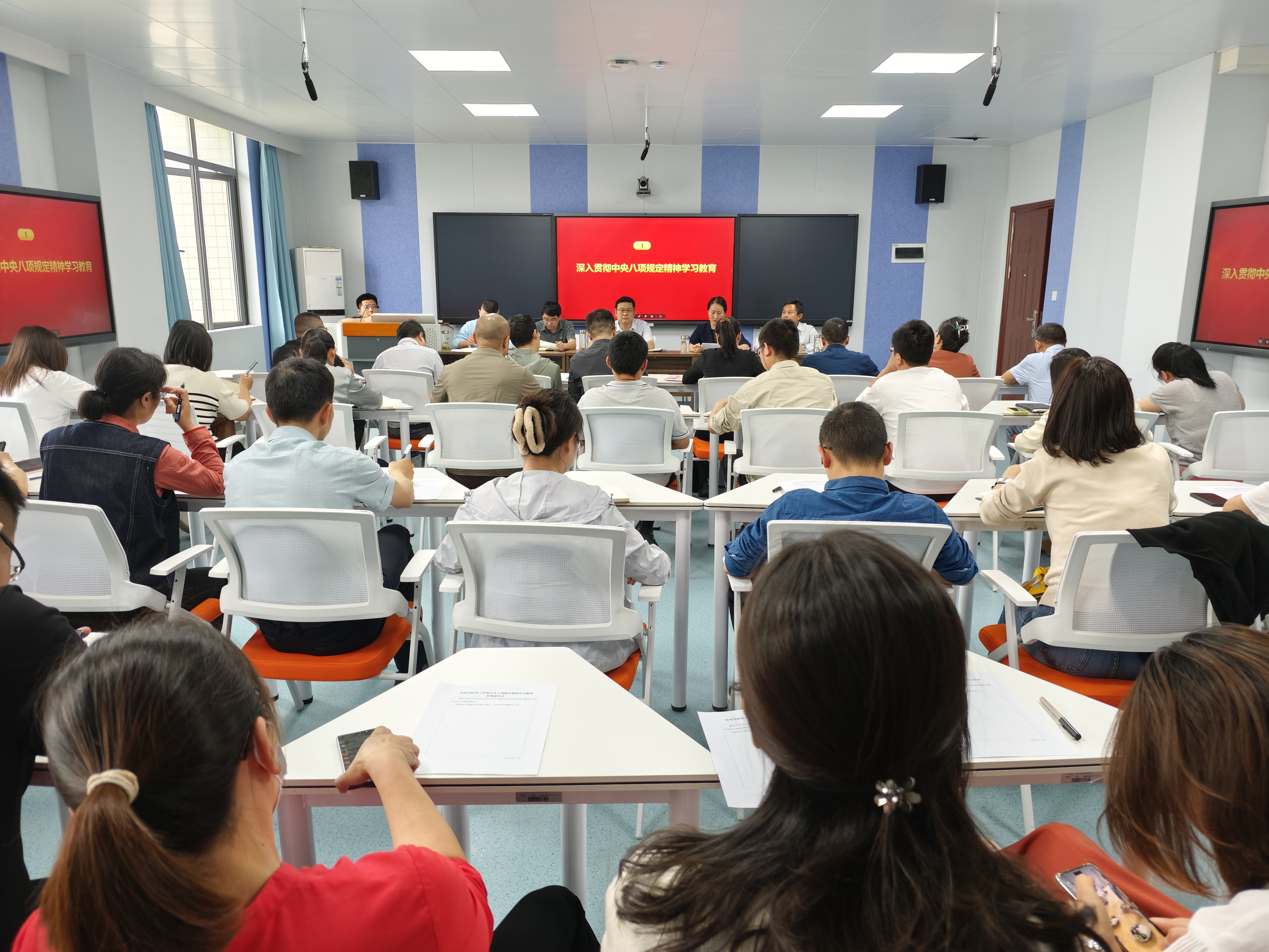 徐明霞围绕中央八项规定精神的出台背景、主要内容及重大意义进行了深入解读。她指出,中央八项规定精神是改进作风的切入口和动员令,是长期有效的铁规矩、硬杠杠,必须常抓不懈。会上通过生动的违反中央八项规定及其实施细则精神典型警示案例分析和详实的数据展示,让全体教职工深刻认识到违反中央八项规定精神问题的严重性和危害性,进一步增强了贯彻落实思想自觉和行动自觉。